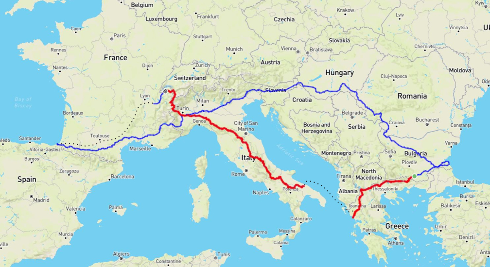 Nous avons parcouru l'Europe, de la côte atlantique à Hendaye jusqu'à la Mer Noire en Bulgarie, et retour... soit un périple de 10000 km en 19 mois.